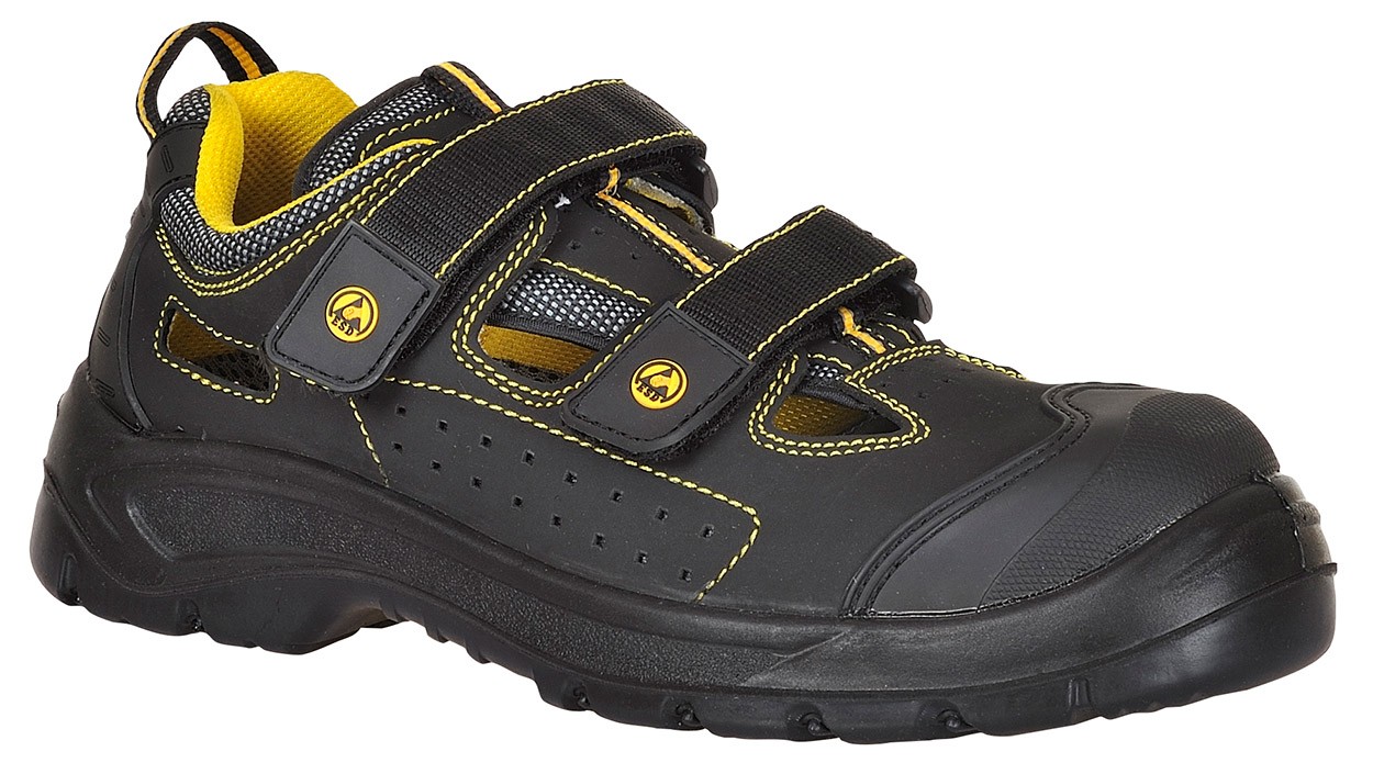 100% non metallic durable safety sandal with dual density PU outsole, certified to ESD Class 3. Breathable upper design for those working in warm conditions. Hook & loop closing for snug fit.